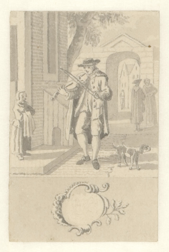 - Ontwerpen voor de zestig kaartjes van een loterijspel (Straattafereel met een vioolspelende muzikant ), 1740 - 1760