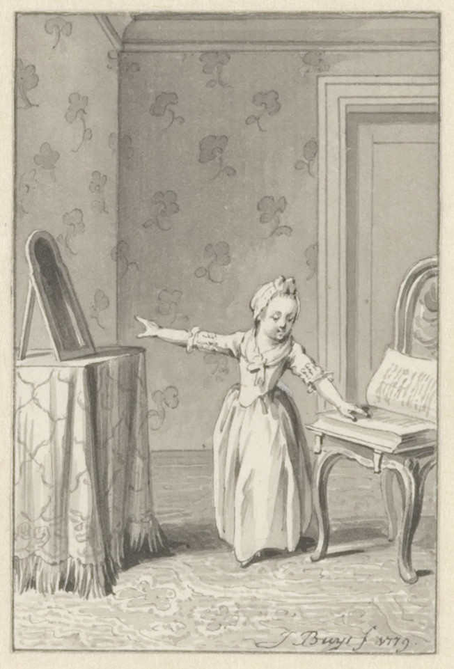 Veiling Cornelis van Stroo, Alkmaar, 29 juli 1811 e.v.d., Kunstboek P: 'Inhoudende 44 stuks Teekeningen, met den Titel; allen met de Pen en O.I. inkt door Jacobus Buys behorende tot de Kindergedichten van J. van Alphen' en 'Ook nog 24 stuks Teekeningen tot onderscheidene Werken behoorende, allen met O.I. inkt door zoo Evengemelde Meester [Jacobus Buys].';Aankoop 1985 (van E.H. Ariëns Kappers, Amsterdam, zogenaamd als afkomstig uit de collectie van Cornelis Schoon (1719-1778), Broek in Waterland, gehuwd met Neeltje Pater)