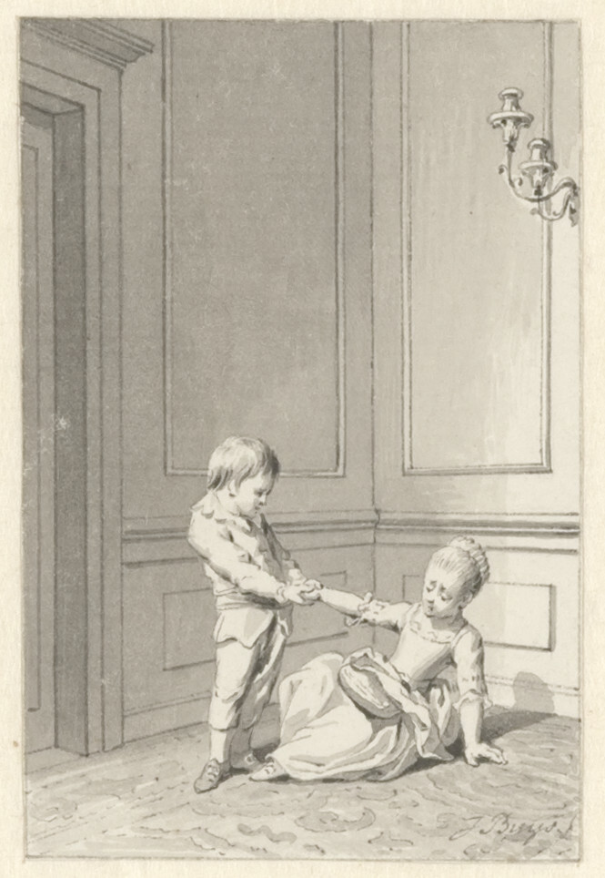 Veiling Cornelis van Stroo, Alkmaar, 29 juli 1811 e.v.d., Kunstboek P: 'Inhoudende 44 stuks Teekeningen, met den Titel; allen met de Pen en O.I. inkt door Jacobus Buys behorende tot de Kindergedichten van J. van Alphen' en 'Ook nog 24 stuks Teekeningen tot onderscheidene Werken behoorende, allen met O.I. inkt door zoo Evengemelde Meester [Jacobus Buys].';Aankoop 1985 (van E.H. Ariëns Kappers, Amsterdam, zogenaamd als afkomstig uit de collectie van Cornelis Schoon (1719-1778), Broek in Waterland, gehuwd met Neeltje Pater)