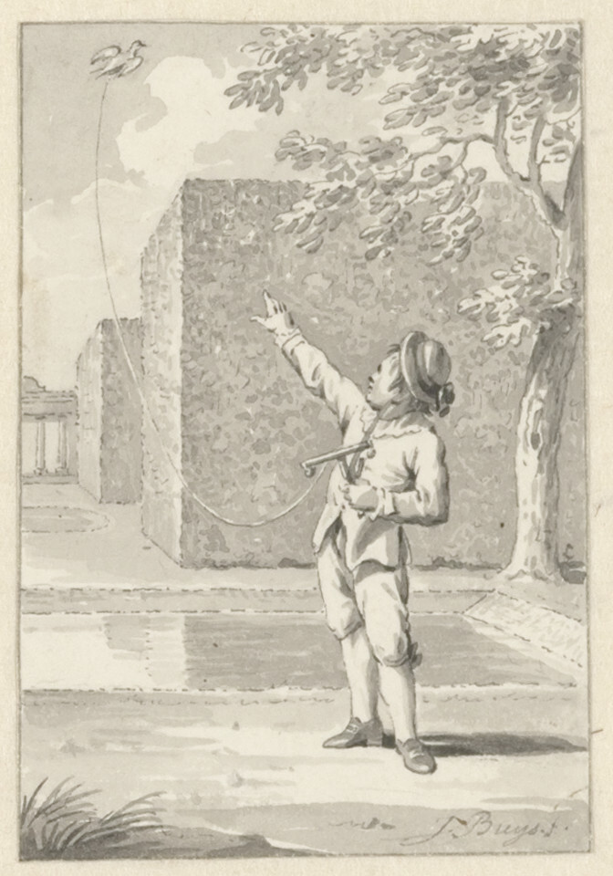Veiling Cornelis van Stroo, Alkmaar, 29 juli 1811 e.v.d., Kunstboek P: 'Inhoudende 44 stuks Teekeningen, met den Titel; allen met de Pen en O.I. inkt door Jacobus Buys behorende tot de Kindergedichten van J. van Alphen' en 'Ook nog 24 stuks Teekeningen tot onderscheidene Werken behoorende, allen met O.I. inkt door zoo Evengemelde Meester [Jacobus Buys].';Aankoop 1985 (van E.H. Ariëns Kappers, Amsterdam, zogenaamd als afkomstig uit de collectie van Cornelis Schoon (1719-1778), Broek in Waterland, gehuwd met Neeltje Pater)