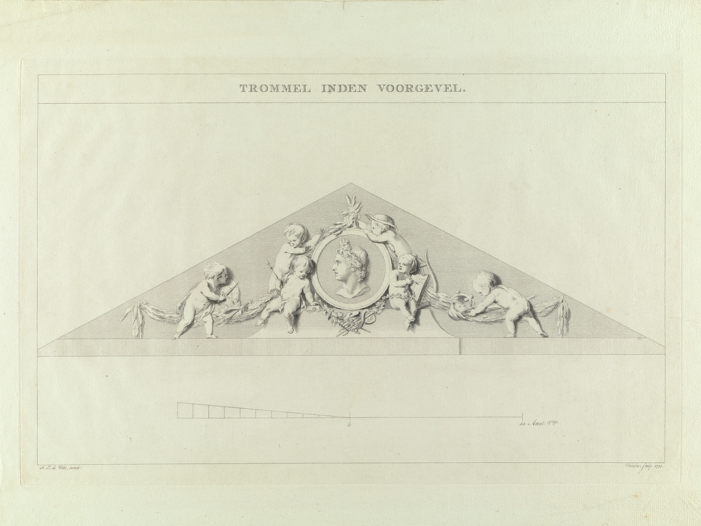 - Trommel in de voorgevel ui de serie: afbeelding van den schouwburg te Amsterdam, 1774