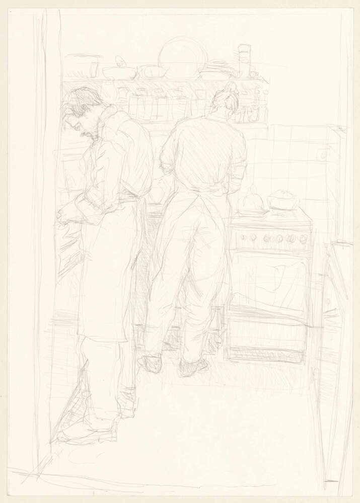 - Joost Schrage en zijn vriendin Karin in de keuken, 2000