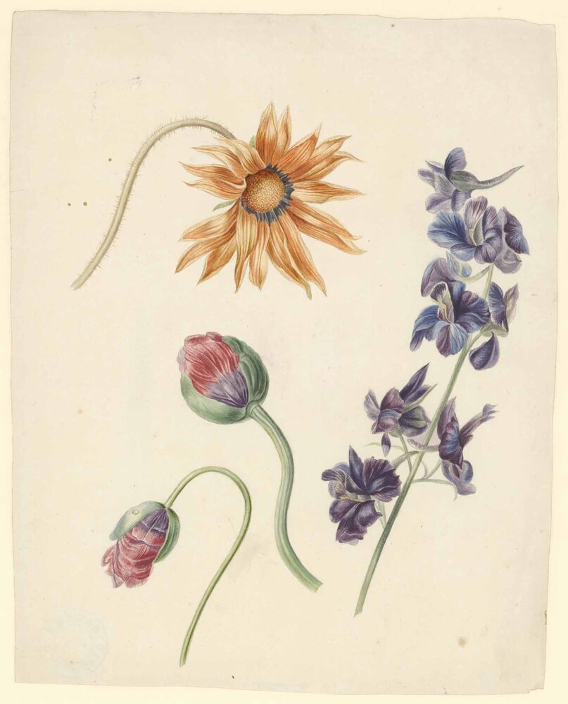 Na Catharina Backer (1698-1766) zijn er mogelijk nog andere leden van de familie geweest die het schilderen en tekenen beoefenden. De anonieme maker van deze tekening (en een aantal andere in de museumverzameling) was een van de vele amateurkunstenaars die bloemen tot onderwerp kozen. Daarbij hadden zij de keuze uit vele nieuwe soorten, zoals de Arctotis, een plant die waarschijnlijk pas in de 19de eeuw uit het Kaapgebied werd ingevoerd in Europa. ( Bert Vreeken)