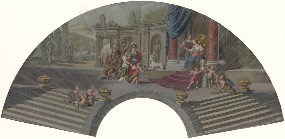 - Blad van een waaier met Allegorische voorstelling, 1700 - 1766