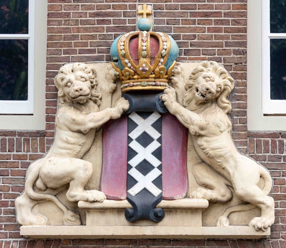 In de westelijke gevel van het voormalige Burgerweeshuis aan de Nieuwezijds Voorburgwal bevindt zich deze gevelsteen met het gekroonde stadswapen van Amsterdam. De steen is in 1681 gehouwen door beeldhouwer Bartholomeus Eggers, die er destijds 150 gulden voor betaald kreeg. Eggers werkte onder meer mee aan de decoratie van het stadhuis (het huidige Paleis) op de Dam, onder leiding van Artus Quellinus. Deze gevelsteen maakte onderdeel uit van de laat zeventiende-eeuwse verbouwing van het Meisjesvleugel van het Burgerweeshuis. ( Sarah Remmerts de Vries)