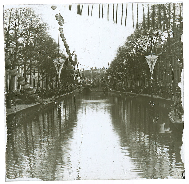 - Vijftien toverlantaarnplaatjes (versiering aan gracht), 1898