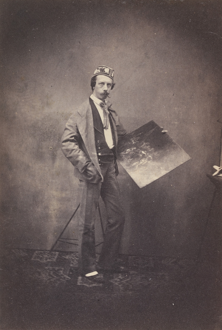 - Abraham Willet ten voeten uit met een kopie van de Nachtwacht in zijn handen, 1850 - 1870