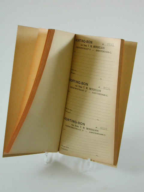- Boek met kortingsbonnen Fa. T.M. Mendelson, 1900 - 1920