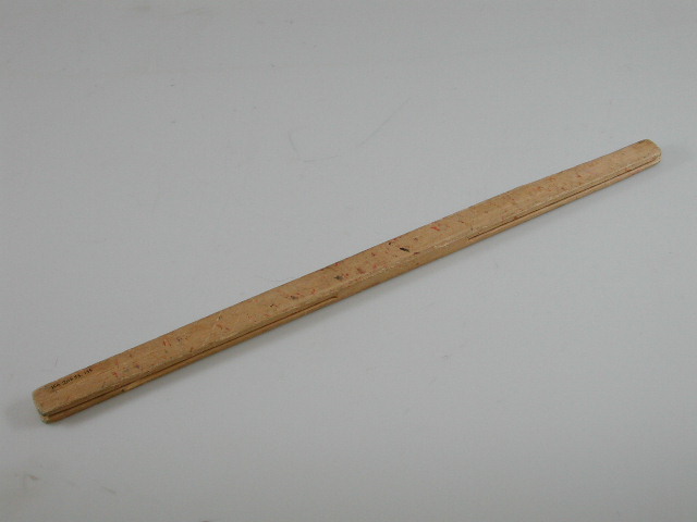 Blankhouten stok met diepe gleuf aan beide uiteinden.- Trefwoorden