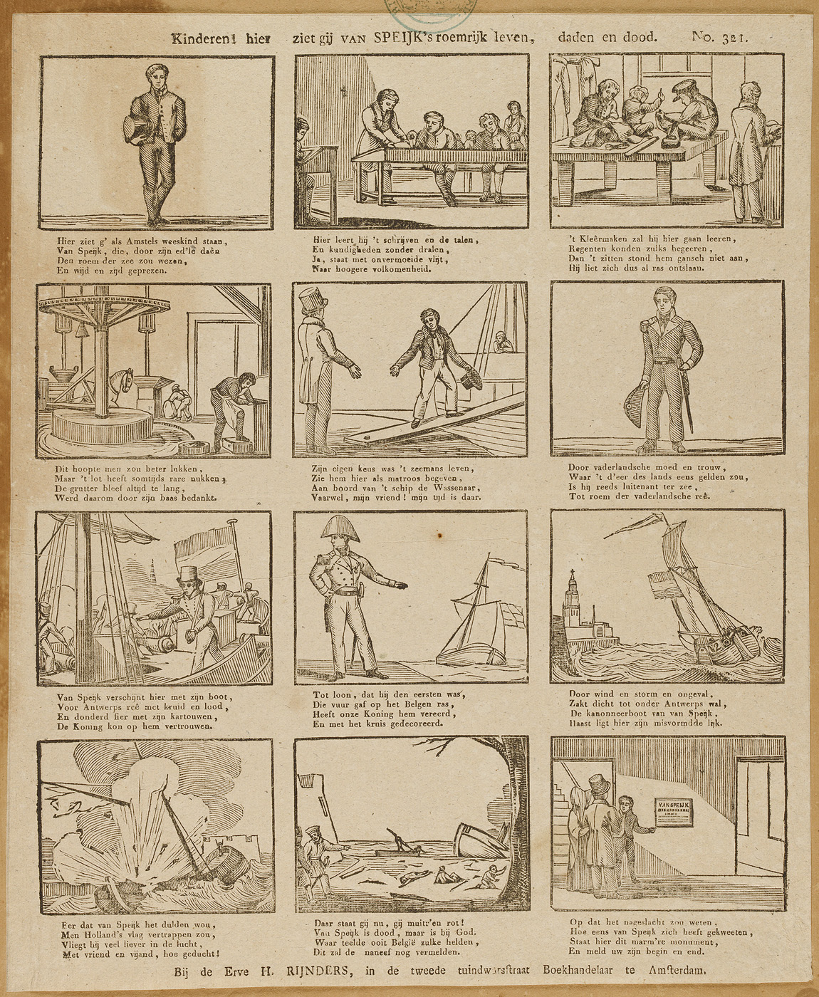 opschrift midden boven: hierziet gij van SPEYK's roemrijk leven, dade en dood. No. 321.