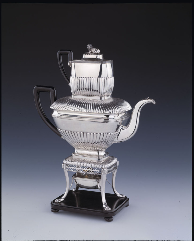 Deze kofiefilterkan uit 1825 van de zilversmid Jean Theodore Oostermeyer is een voorbeeld van een nieuw type kan, waarin de koffie met behulp van een filtersysteem werd gezet. Bij het oudere model kraantjeskan – zonder filters - zonk de koffiedrab op de bodem, wat veelal leidde tot een verstopt kraantje. ( Annemarie den Dekker)