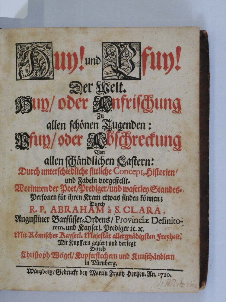 - Huy und Pfuy der Welt. Nürnberg, Christoph Weigel, 1710, 1710