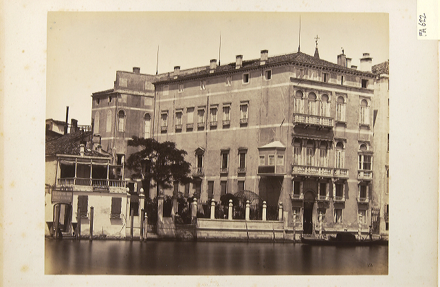 Carlo Naya heeft zo ongeveer iedere steen in Venetië gefotografeerd sinds hij zich in 1857 in die stad vestigde. Een aantal palazzi werd op een gegeven moment hotel, waaronder het Palazzo Zucchelli ofwel hotel Barbesi. De laatste naam is juist leesbaar boven de toegang (rechts op de foto, bij de gondel). De Willets hebben er in 1870 negen dagen gelogeerd. Deze afdruk moet eerder zijn gemaakt: de achterkant vermeldt het adres waar Naya tot1868 gevestigd was. ( Hans Rooseboom)