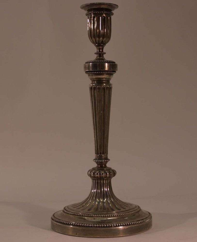 Gecanneleerde zilveren kandelaar.- Trefwoorden