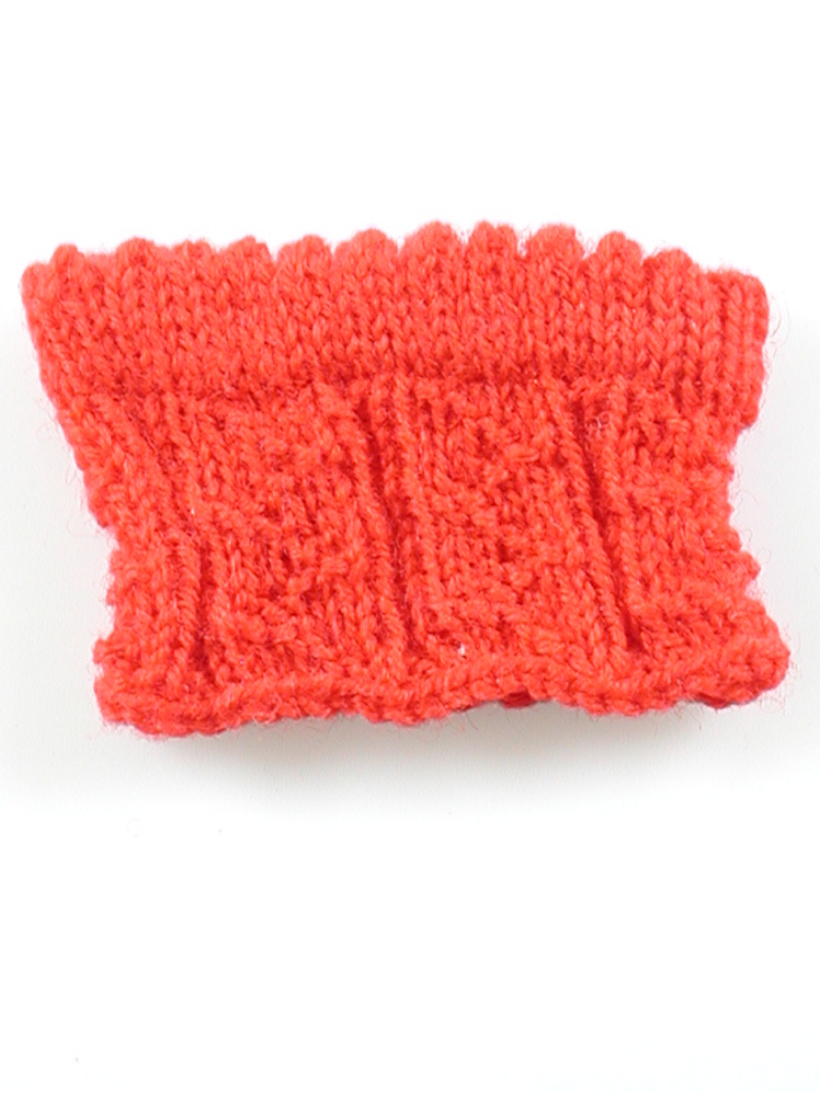 Gebreid boord van rood/wit-rood katoen. Handwerkproef van mevr. R.A.J. Grabrandt.- Trefwoorden