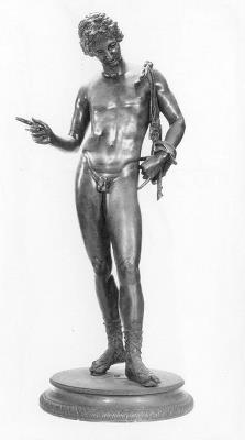 Kopie naar het in 1862 gevonden beeld van een jongeman (mogelijk omgeving Praxiteles, 4-de eeuw v.Chr.; verblijfplaats Museo Nazionale te Napels). Het beeld werd in eerste instantie Narcissus genoemd, maar tegen het eind van de vorige eeuw werd de titel veranderd in Dionysos. Naar dit beeld werden al snel na de ontdekking ervan kopieën uitgebracht. ( Mieke van der Wal)