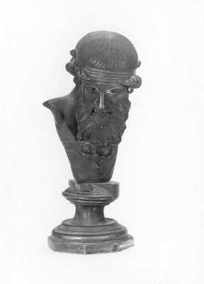 Kopie naar een in 1759 in Herculaneum gevonden portret van een man (verblijfplaats Museo Nazionale te Napels). In eerste instantie werd gedacht dat Plato was voorgesteld, maar nadat deze toeschrijving onjuist bleek te zijn werd de buste als portret van Dionysos betiteld*2. Naar deze buste werden in de 19de eeuw diverse bronzen kopieën uitgebracht.