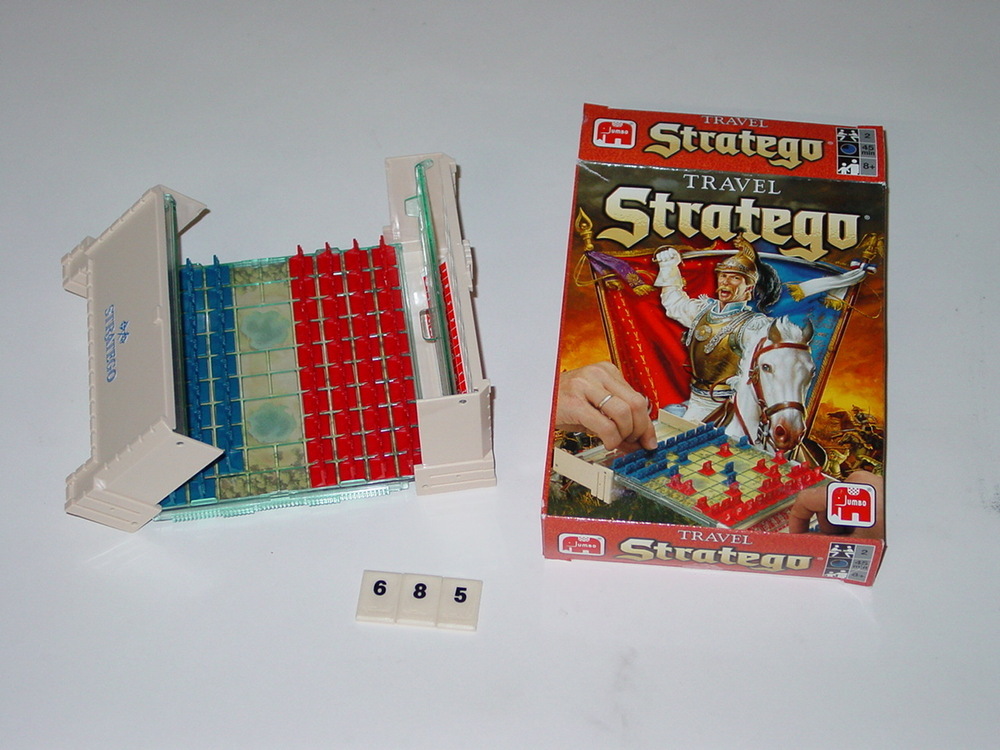 rode en blauwe speelstukken; opbergdoos tevens speelveld; doos- Trefwoorden