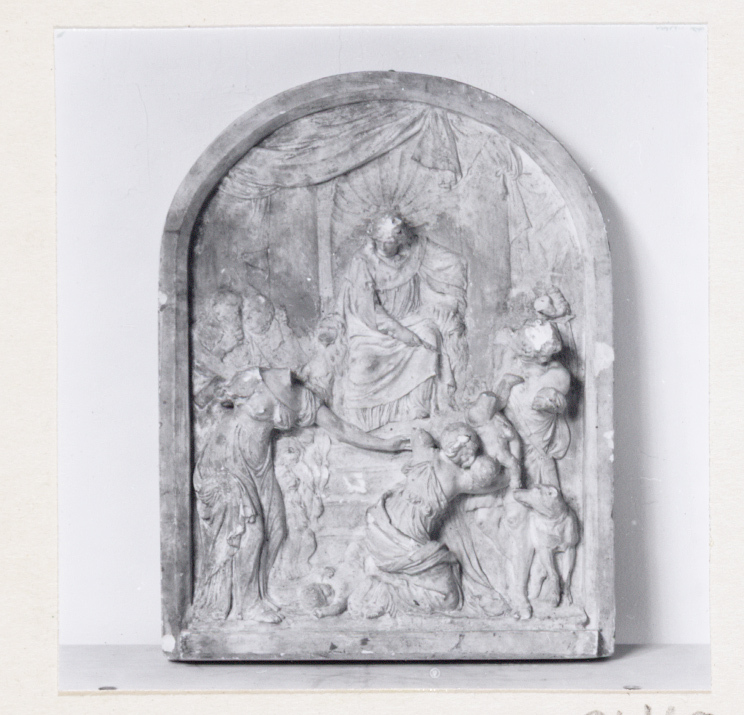 Afgietsel naar het terracotta model van Het Oordeel van Salomo door Artus Quellinus voor de Vierschaar in het stadhuis op de Dam. Mogelijk is de gipsen kopie in 1877 door E. Colinet - samen met een aantal andere ontwerpen van Quellinus - vervaardigd.
