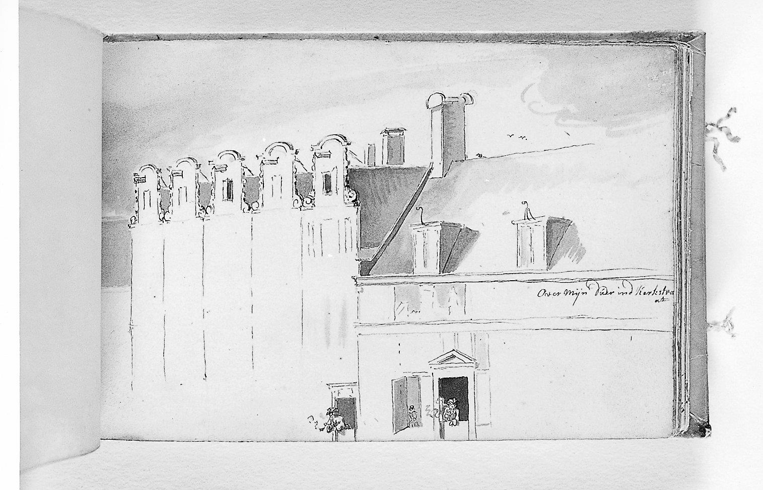 signatuur/datering rechts op daklijst: Over mijn duer ind Kerkstra/at