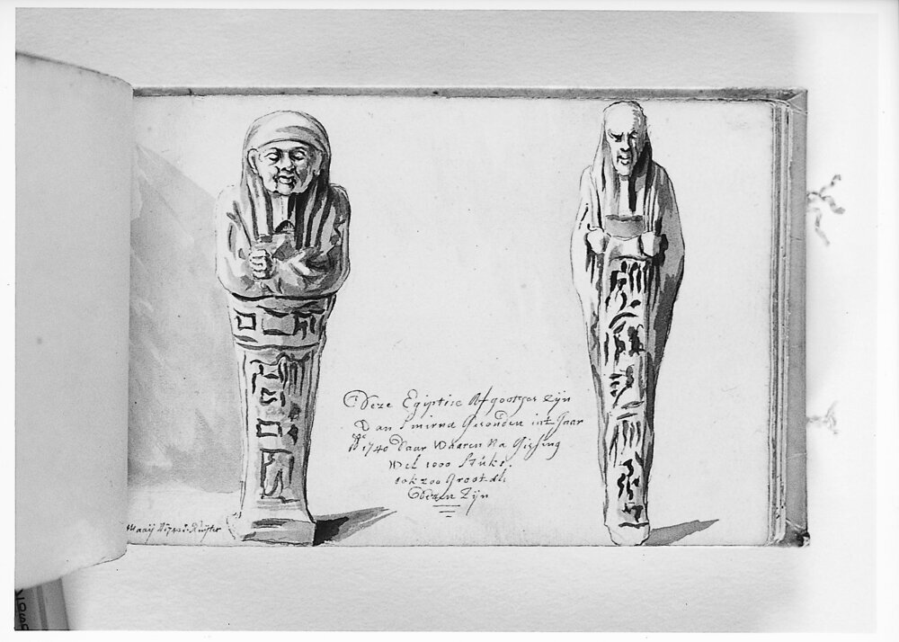 opschrift midden onderaan: deze Egiptise Afgootjes zijn/Van Smirna Gesonden int Jaar/Ao 1740 daar waaren Na Gissing/Wel 1000 Stuks/ook zoo Groot als/dezen Zijn