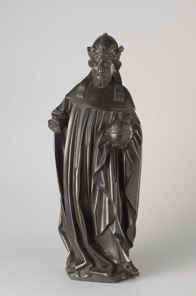 Een grafbeeldje uit een reeks van tien (oorspronkelijk 24), afkomstig van het praalgraf van Isabella van Bourbon (gestorven 1465), in 1476 opgericht in de Sint-Michaelsabdij te Antwerpen. Dergelijke graffiguren - in werkelijkheid verwanten van de overledene en rouwdragers of plorannen genoemd - maken deel uit van een middeleeuwse Zuidnederlandse traditie. De 'Amsterdamse' beeldjes zijn spiegelbeeldige kopieën van plorannen aan twee eerdere - eveneens 15de-eeuse en thans niet meer bestaande - graftombes te Brussel en Rijssel. Dit verklaart hun stilistisch wat vroeger te duiden uiterlijk. De onzekere identificatie der voorgestelden is mede het gevolg van het verloren gaan van de oorspronkelijke wapenschildjes en de vele plaatsverwisselingen die de beeldjes in de loop der tijd ondergingen. De tien plorannen moeten vóór 1678 van Isabella's tombe zijn verwijderd. Hoe ze in het bezit zijn gekomen van Jan de Vos is niet bekend. Zijn zoon Pieter de Vos, klerk ter secretarie in Amsterdam, zal de beeldjes van zijn vader hebben geërfd. In 1691 deed hij ze tegen een lijfrentee over aan het Amsterdamse stadsbestuur, dat in de veronderstelling verkeerde met figuren van Hollandse graven en gravinnen van doen te hebben.