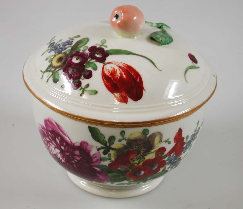 Suikerpot, met deksel, beschilderd met bloemendecor.- Trefwoorden