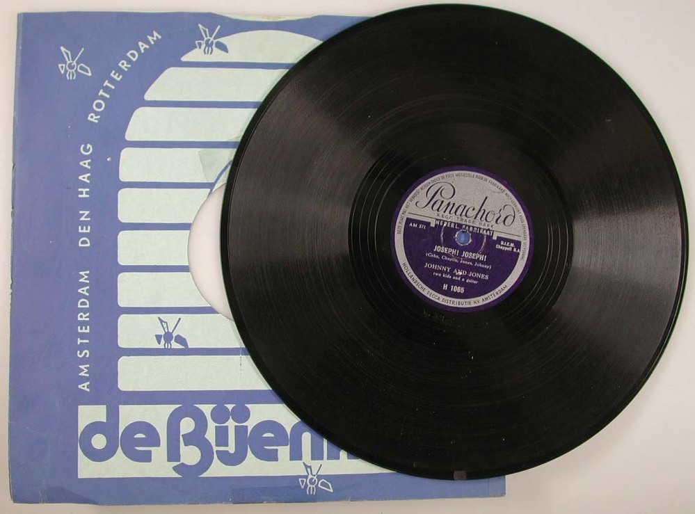 De 78-toerenplaat is de oudste grammofoonplaat. De meeste vroege 78-toerenplaten werden gemaakt van schellak, dat zeer breekbaar was. Gewoonlijk stonden er twee nummers op één plaat, één op de A-kant en één op de B-kant. Zo ook op deze plaat, waar het de nummers 'Joseph Joseph' en 'Wat een weer, wat een weer' betreffen. De liedjes zijn uitgevoerd door Johnny and Jones, een Amsterdams jazzduo, bestaande uit Nol (Arnold Siméon) van Wesel (1918-1945) en Max (Solomon Meyer) Kannewasser (1916-1945). Ze maakten humoristische parodieën, steevast in een Amerikaans accent uitgesproken. Hun grootste hit was ‘Mijnheer Dinges weet niet wat swing is’ uit 1938. Tijdens de Duitse bezetting mochten de joodse Nol en Max niet meer optreden. In 1943 werden ze samen met hun echtgenotes opgepakt en in kamp Westerbork tewerkgesteld. Ze zouden de oorlog niet overleven. ( Sarah Remmerts de Vries)
