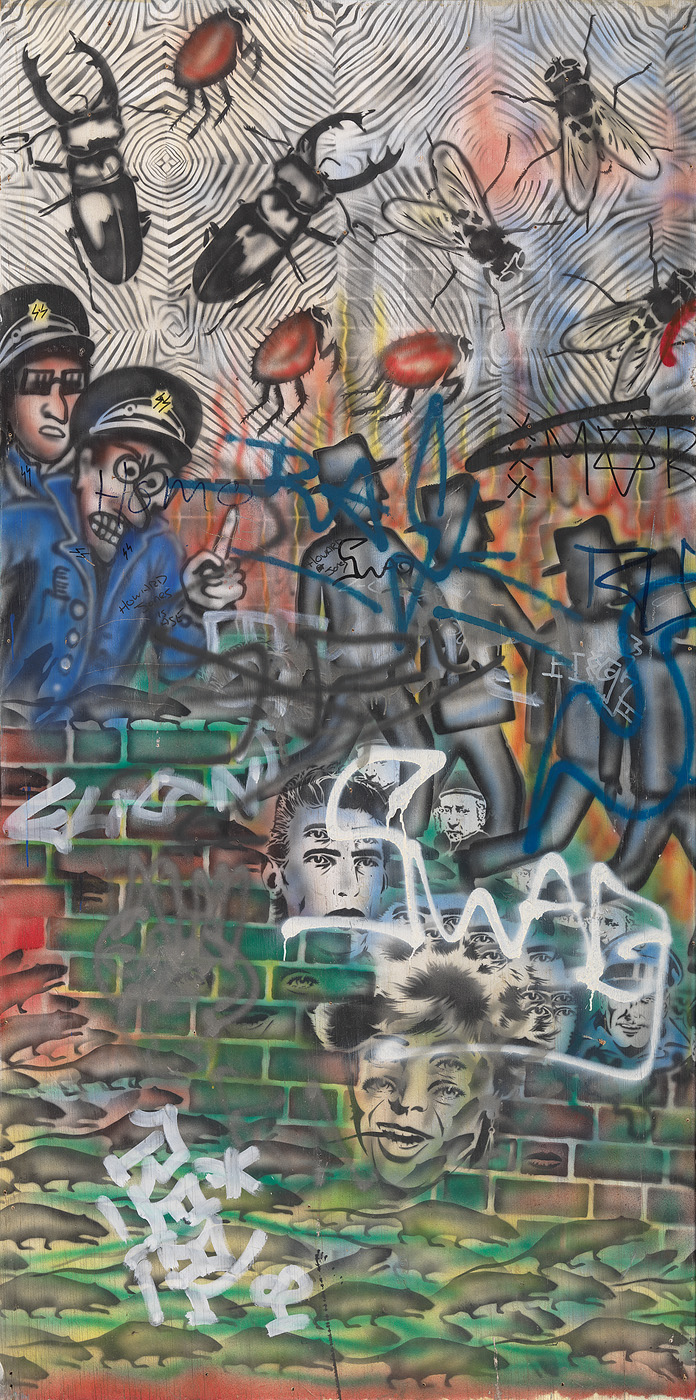 De voorstelling is gemaakt met stencils en airbrush-techniek. Met de stencils maakt Kaagman repeterende patronen zoals het patroon in de lucht, maar ook de ratten en de ‘kantoorslaven’ die elke ochtend naar hun werk gaan. De ratten hebben te maken met het riool, ondergronds net als de metro, maar ook met de Punkbeweging waar Kaagman een belangrijke rol in speelde. Veel punks liepen met een ratje op hun schouder rond. In de jaren dat de schutting op het Waterlooplein stond, werden er met viltstift en verf veel graffitinamen aan toegevoegd. Voor conservator Carry van Lakerveld was de aanwezigheid van deze extra graffiti-laag een reden om juist deze panelen te verwerven voor de stadscollectie.