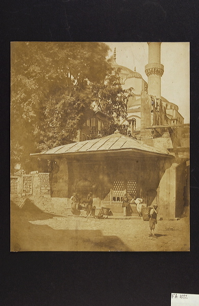Gezicht op kiosk en moskee te Istanboel.- Trefwoorden