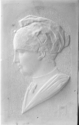 dit reliëf is in 1890 twee keer tentoongesteld geweest op Tentoonstellingen van Werken van Levende Meesters. In Arnhem werd het onder de titel 't Weesje geëxposeerd en in Den Haag onder de titel Boerinnekopje. Toen het vijf jaar later door het Burgerweeshuis werd verworven, luidde de titel Weemoed. Dat het om een Amsterdams weesmeisje gaat, blijkt uit het wapen van Amsterdam in de rechter benedenhoek. ( Mieke van der Wal)