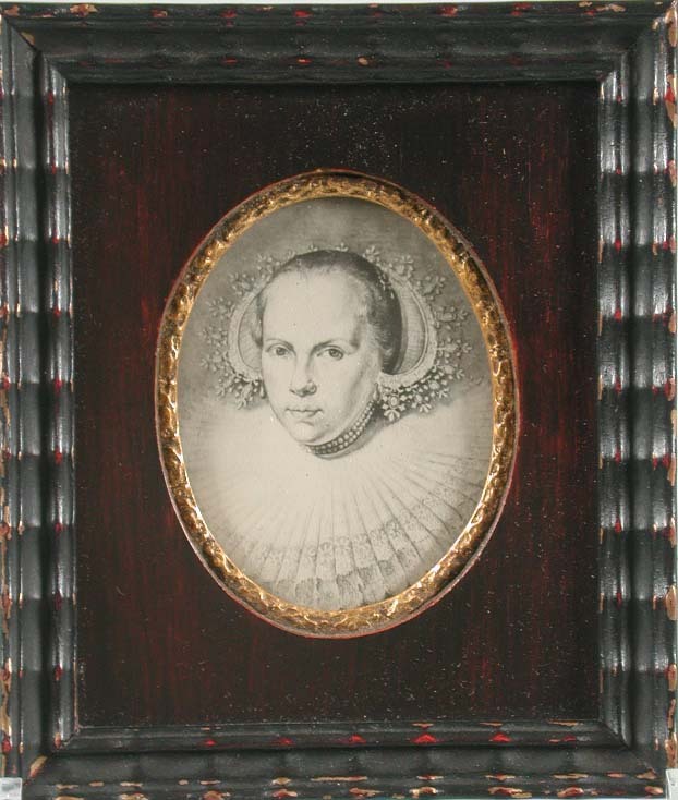 etiket achterzijde lijst: ALBUM BACKER no 124/ SPIEGEL Bregje (Brigitta)/ Laurens Jan´s zn dr ex./Neeltje Isaacs dr no 125 1606-1668/x7 II1627/BACKER Willem No 30./: wit, vierkant etiket met zwarte, handgeschreven tekst