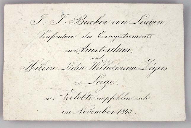 - Verlovingskaartje Jacob Joris Backer van Leuven (1805-1872) en Héloise Lidia Wilhemina Zegers (1821-1900), 1843