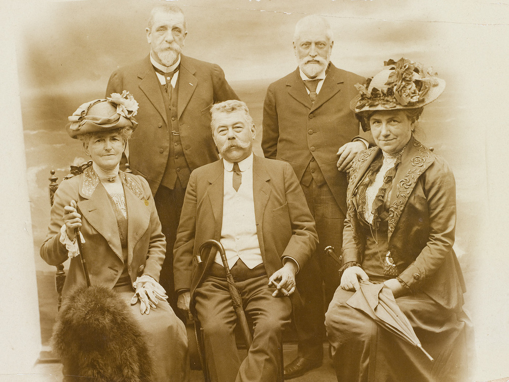 - Agnes Ortt van Schonauwen-Backer, H.J. Ortt van Schonauwen, Johan Ferdinand Backer, Jan Arend Hoeufft en Cornelia Henrietta Hoeufft-Backer in Scheveningen op 14 juli 1914, 1914