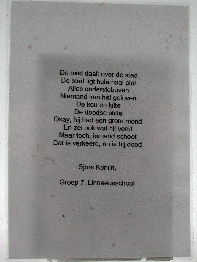 - Memorabilia afkomstig van plek van moordaanslag op Theo van Gogh (gedicht), 2004