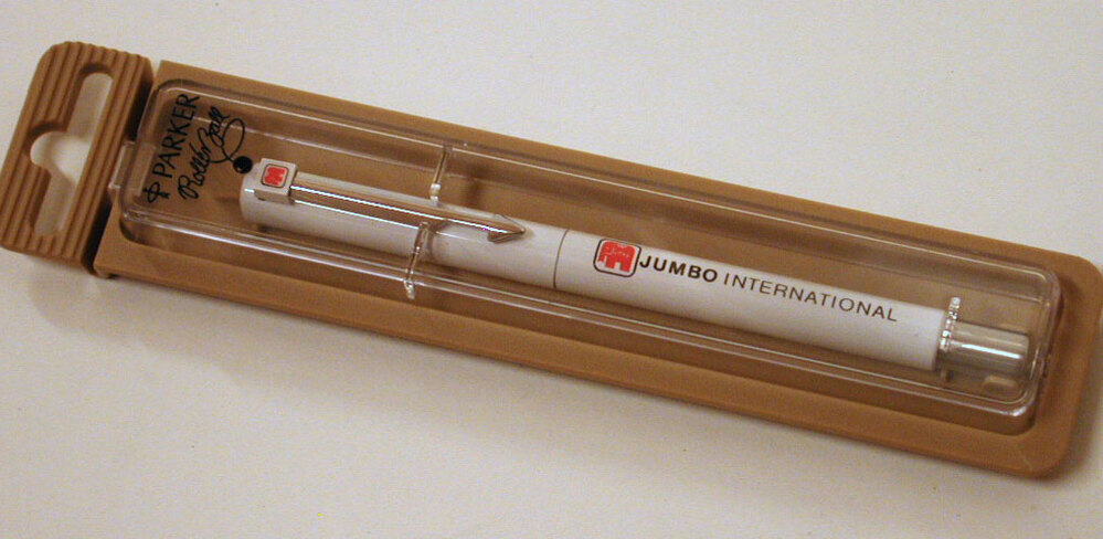- Pen, type Roller Ball, met opdruk JUMBO INTERNATIONAL, 1953