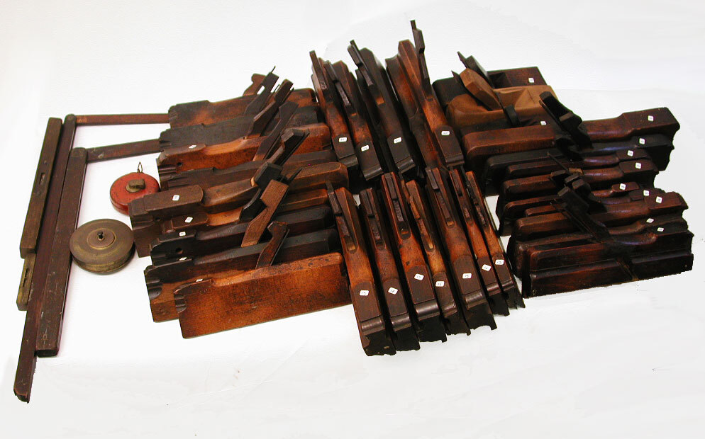 32 schaven, twee waterpassen, twee zweihaken, twee rolmaten en een schietlood- Trefwoorden