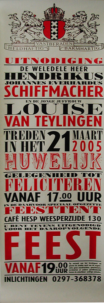 - Uitnodiging voor huwelijk van Henk Schiffmacher en Louise van Teylingen op 2005/03/21, 2005
