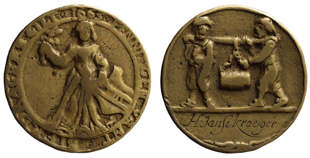 omschrift keerzijde: PENNINGEN VANT BIERDRAGERSGILT.1665.