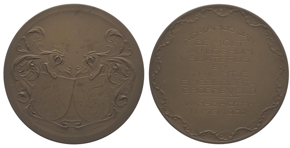 opschrift keerzijde: ADRIANUS JAN / BEMOLT / VAN LOGHUM / SLATERUS / EN / TRIJNTJE / ENGELBERTA / GROENEVELD / WINSCHOTEN / 11 MEI 1936
