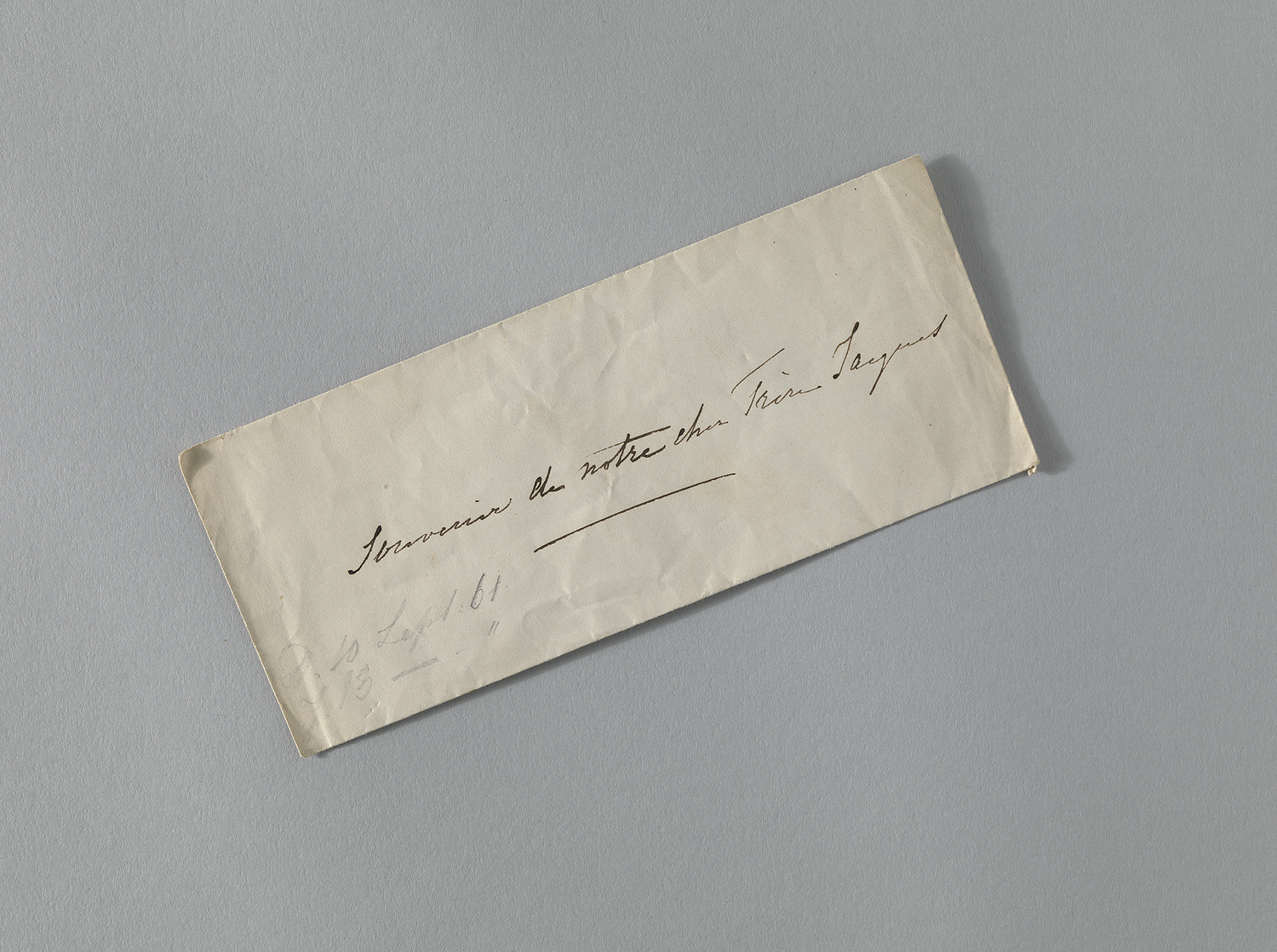 Haarlok in kleine envelop met daarop geschreven 'Souvenir de notre cher Frére Jacques'.- Trefwoorden