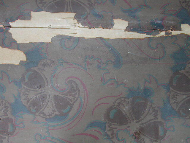 - Fragmenten van behang, linoleum en kunstleren stoelbekleding uit Tuschinski (twee stukken behang), 1911 - 1931