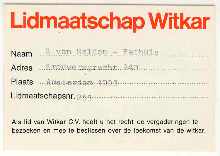 - Documentatie over Witkar (lidmaatschapspas), 1973