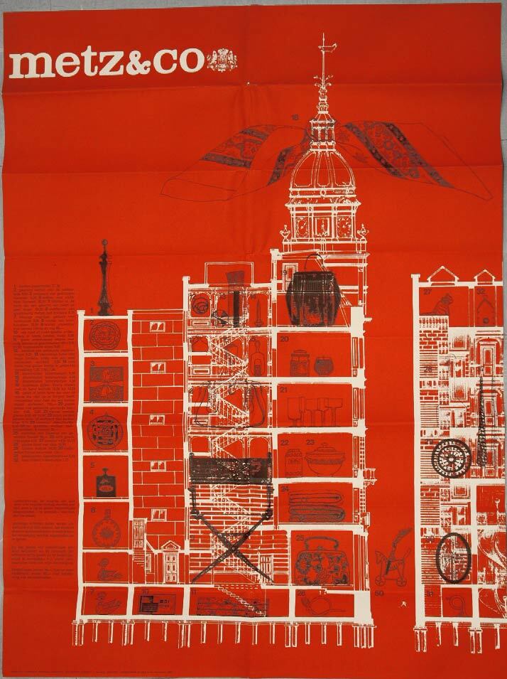 Het economische herstel in de jaren ’50 was zichtbaar in het drukwerk dat omvangrijker, op mooier papier en in kleur werd uitgevoerd en geïllustreerd: nooit de kleding zelf, altijd een sfeersuggestie, een thema. Vanaf ongeveer 1955 werd Metz’ confectie steeds belangrijker. Een nieuwe modelijn werd opgezet: de Josephine collectie. De mode-illustraties hiervoor werden gemaakt naar het type Audrey Hepburn: ultraslanke meisjes met petticoats, of – iets ouder – in een kraagloos mantelpakje met grote knopen en kokerrok. ( Annemarie den Dekker)