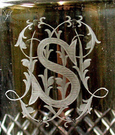 Deze karaf en glazen komen uit het bezit van de Amsterdamse architect Abraham Salm (1857-1915). Samen met zijn vader Gerlof Bartholomeus Salm (1831-1897) heeft Abraham een grote bijdrage geleverd aan de stedenbouwkundige veranderingen in Amsterdam in de tweede helft van de negentiende eeuw. Waar G.B. Salms naam onlosmakelijk verbonden is met de bouw van Artis in de Plantage, staat zoon Abraham vooral bekend om zijn herenhuizen, stadsvilla’s, (sigaren)fabrieken en paardentramremises, aanvankelijk in classicistische, later in meer historiserende eclectische stijl. Daarnaast ontwierp hij ook interieuronderdelen. Deze 25-delige kristallen drinkset is afkomstig uit het door A. Salm ontworpen huis aan de Weesperzijde 26, waar hij zelf woonde en werkte. Alle onderdelen van de set dragen het monogram ‘S’. ( Sarah Remmerts de Vries)