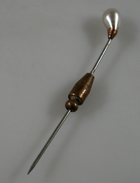 Deze metalen dasspeld met parel komt uit het bezit van de Amsterdamse architect Abraham Salm (1857-1915). Samen met zijn vader Gerlof Bartholomeus Salm (1831-1897) heeft Abraham een grote bijdrage geleverd aan de stedenbouwkundige veranderingen in Amsterdam in de tweede helft van de negentiende eeuw. Waar G.B. Salms naam onlosmakelijk verbonden is met de bouw van Artis in de Plantage, staat zoon Abraham vooral bekend om zijn herenhuizen, stadsvilla’s, (sigaren)fabrieken en paardentramremises, aanvankelijk in classicistische, later in meer historiserende eclectische stijl. Daarnaast ontwierp hij ook interieuronderdelen. Deze dasspeld is afkomstig uit het door A. Salm ontworpen huis aan de Weesperzijde 26, waar hij zelf woonde en werkte. ( Sarah Remmerts de Vries)