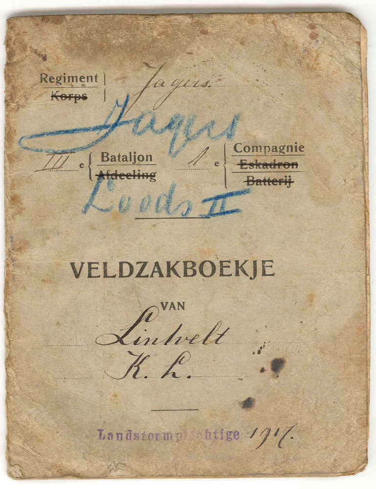 - Veldzakboekje van Karel Lodewijk Lintvelt als dienstplichtige bij het regiment Jagers van de Nederlandse landmacht, 1917