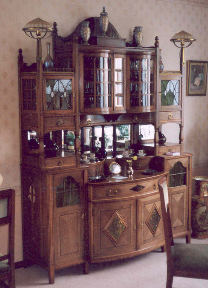 Deze buffetkast is ontworpen door de Amsterdamse architect Abraham Salm (1857-1915). Samen met zijn vader Gerlof Bartholomeus Salm (1831-1897) heeft Abraham een grote bijdrage geleverd aan de stedenbouwkundige veranderingen in Amsterdam in de tweede helft van de negentiende eeuw. Waar G.B. Salms naam onlosmakelijk verbonden is met de bouw van Artis in de Plantage, staat zoon Abraham vooral bekend om zijn herenhuizen, stadsvilla’s, (sigaren)fabrieken en paardentramremises, aanvankelijk in classicistische, later in meer historiserende eclectische stijl. Daarnaast ontwierp hij ook interieuronderdelen. Deze buffetkast is afkomstig uit het door A. Salm ontworpen huis aan de Weesperzijde 26, waar hij zelf woonde en werkte. ( Sarah Remmerts de Vries)