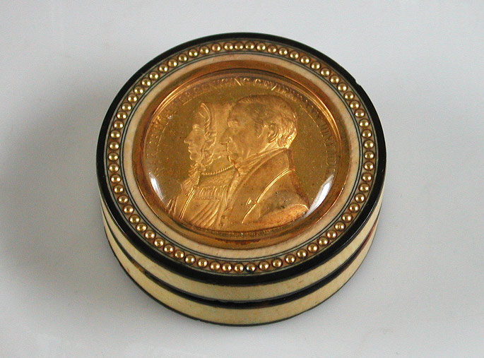- Doosje, in deksel gouden penning gemonteerd, 1843