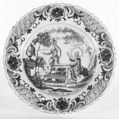 rand: geschulpt met verguld randje; midden: Christus en de Samaritaanse- Trefwoorden